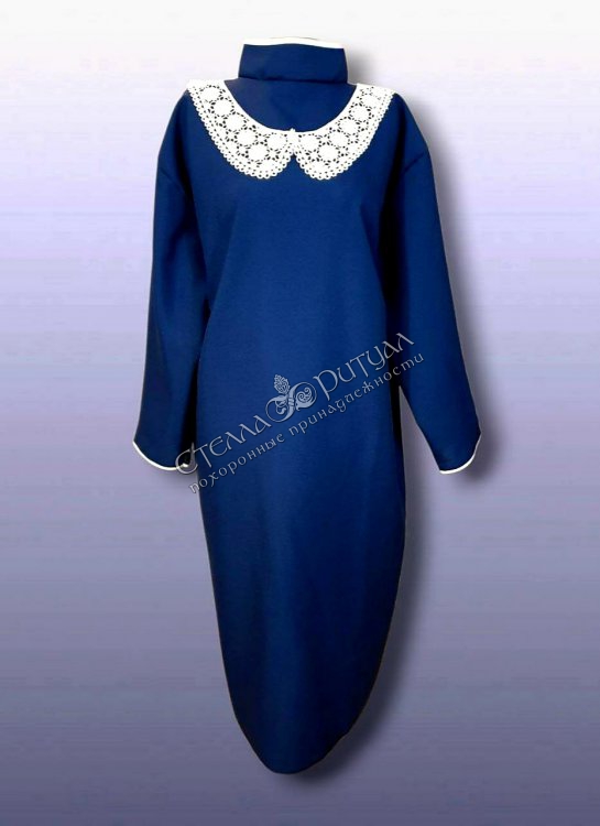 Элегантное женское ритуальное платье с двойным воротником, украшенным мелким жемчугом.