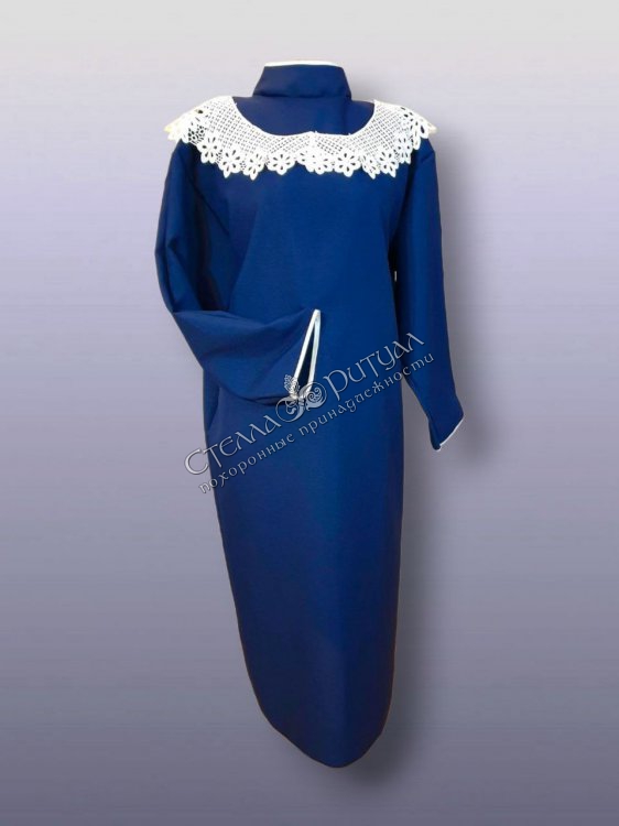 Элегантное женское ритуальное платье с ажурным двойным воротником с жемчугом.