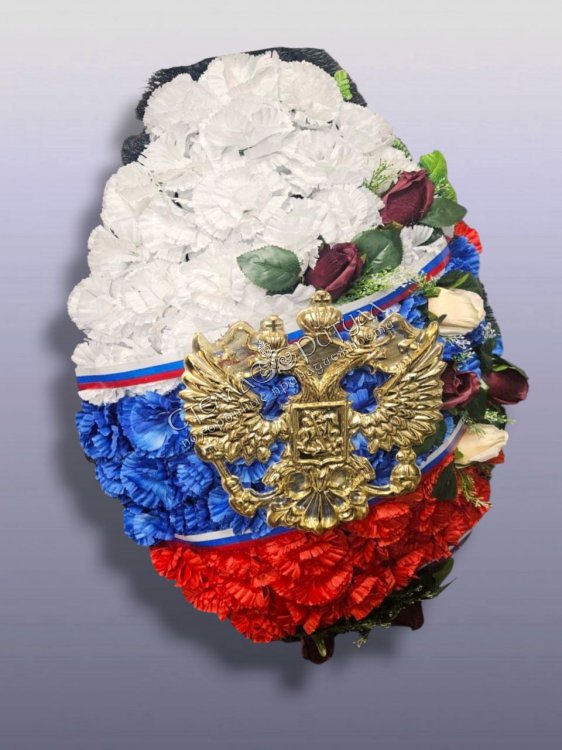 Венок Триколор с крупным гербом (120 см) оптом в магазине ритуальных товаров
